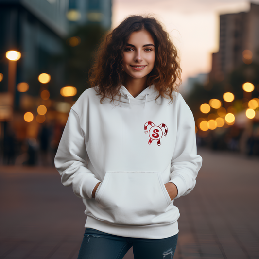Candy Cane Lane Monogrammed Hoodie – White or Black Pullover with Glitter Monogram & Candy Cane Graphic