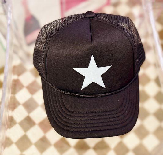 Starlight Spark Trucker Hat – Black Hat with White Glitter Star