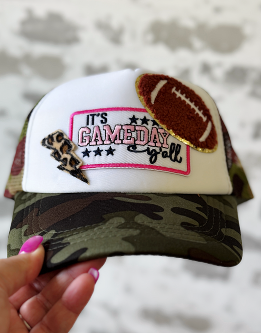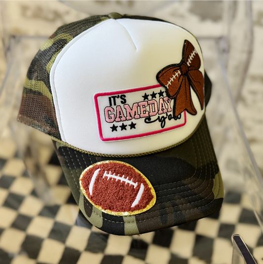 Game Day Bow Trucker Hat – Football Snapback Camo Hat