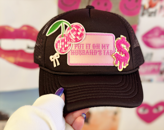 Pink Glam Trucker Hat – Black Hat with Pink Disco Cherries & Sassy Graphic