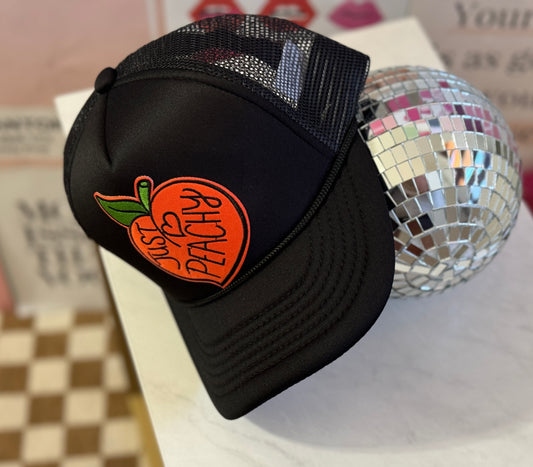 Just Peachy Trucker Hat – Black Hat with Peach Patch Graphic