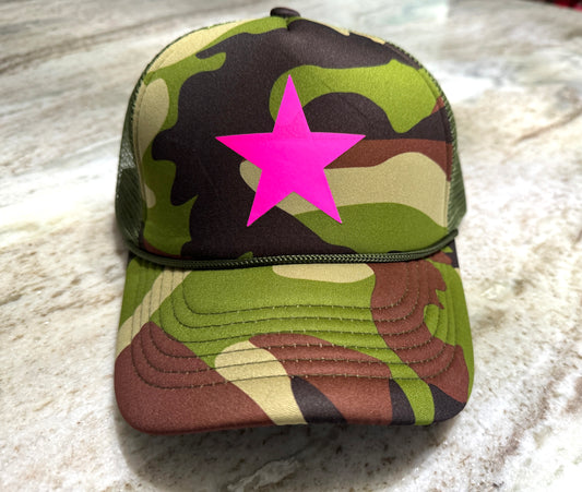 Neon Star Trucker Hat – Camo Hat with Bold Pink Neon Star