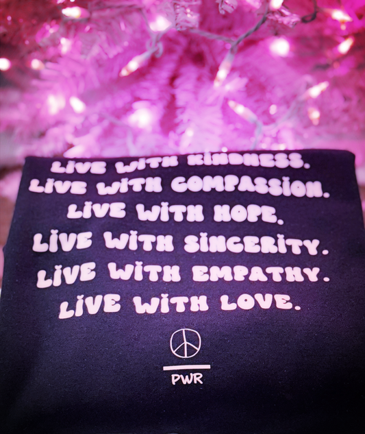 Live With Love Sweatshirt – Black Pullover with Inspirational Quote & Peace Over Power Logo