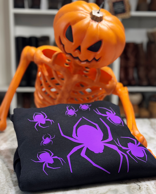 Creepin’ It Real Hoodie – Black Pullover with Neon Purple Spider Graphic