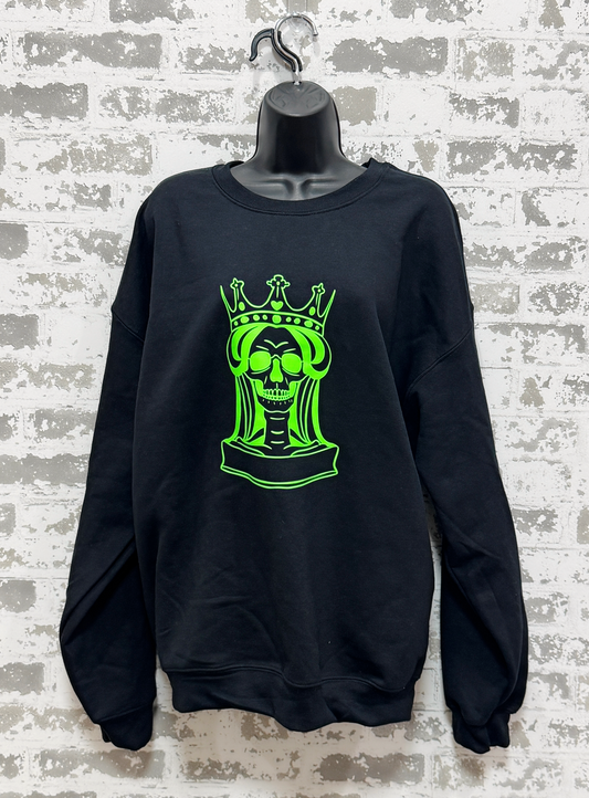 Glow Queen Skeleton Sweatshirt – Neon Green Glow-in-the-Dark Halloween Pullover