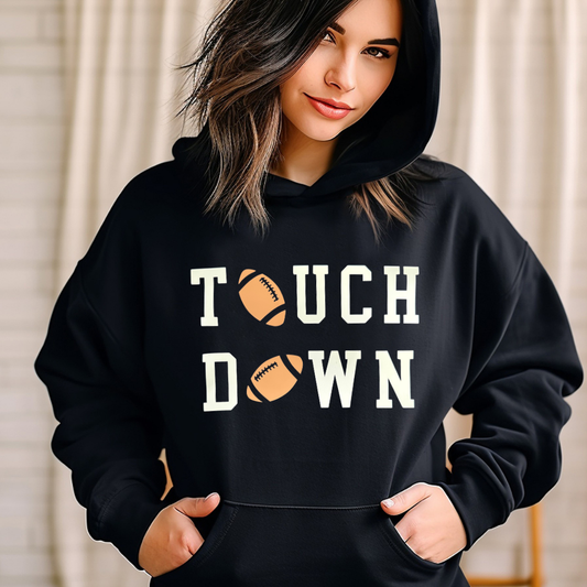 Touchdown Hoodie – Black Pullover with Bold Football Graphic for Game Day Style