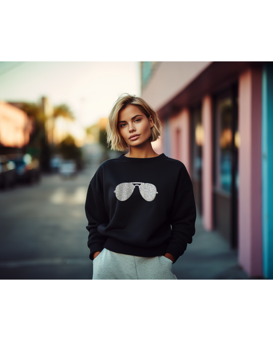 The Shady Sweatshirt – Black Pullover with Glitter Aviator Sunglasses Graphic for Bold Urban Style