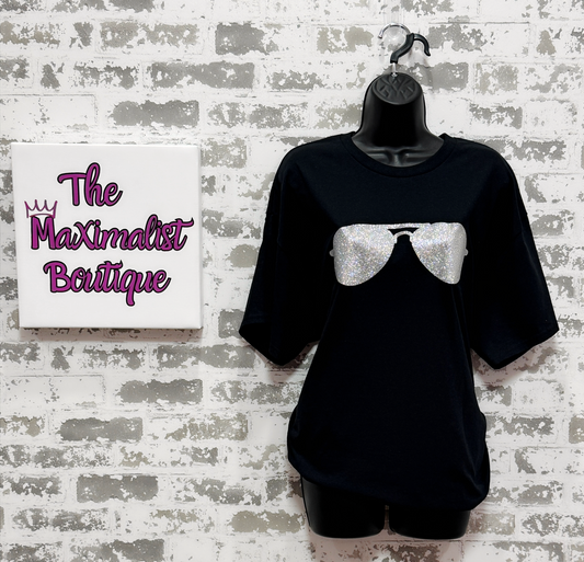 The Shady T-Shirt – Black T-Shirt with Glitter Aviator Sunglasses Graphic for Bold Urban Style