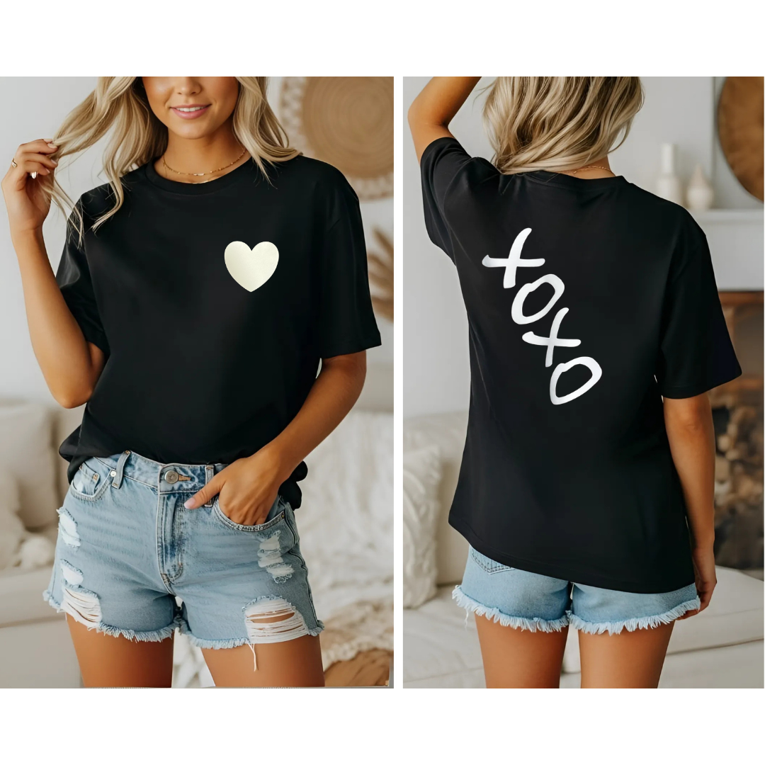 XO Marks the Spot Tee – Black T-Shirt with Heart & XOXO Graphic